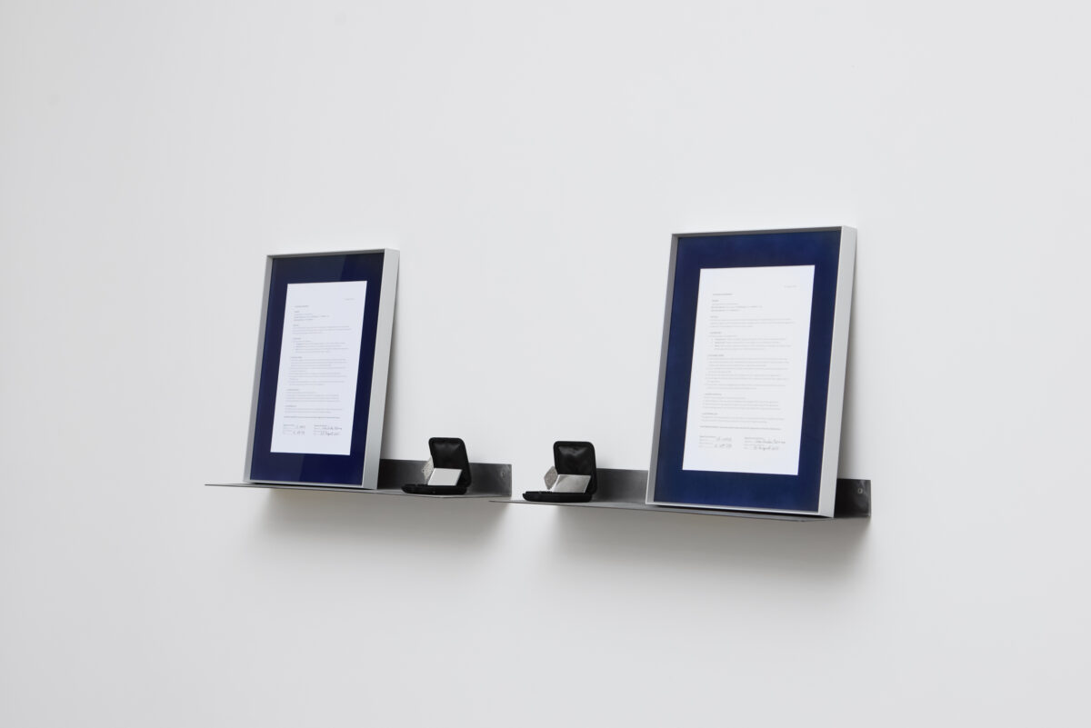 Troca, 2025Transação: Um shilling original de 1645, cunhado em Newark (Inglaterra) por uma réplica desta moeda. Duas moedas de prata, duas caixas de joias e espelhos, dois contratos e duas estantes de aço. Contratos: 40.5 x 30.5 (x 2) Vistas da instalação de “A CRIME, A CONFESSION AND A TRADE” na Nicoletti (Londres, 2025) “Exchange” […]