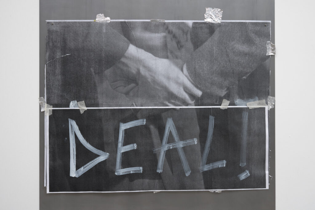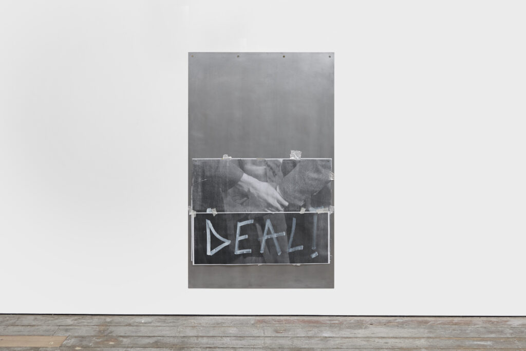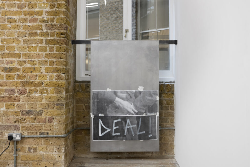 vista da instalação na exposição “A CRIME, A CONFESSION AND A TRADE” na Nicoletti (Londres, 2025)