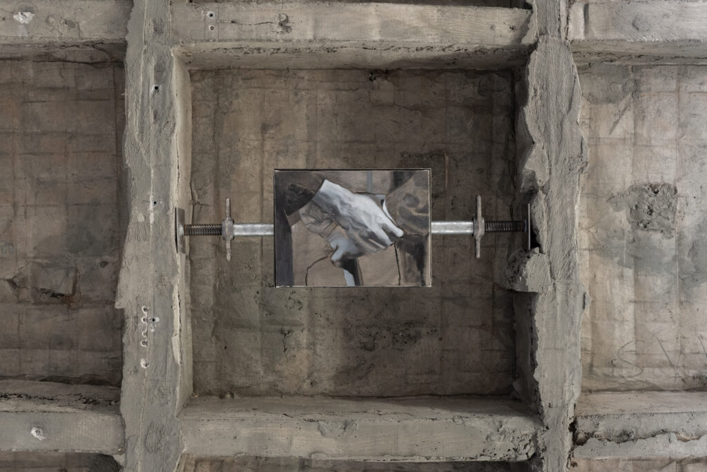 A pintura “DEAL!” baseia-se em um frame do filme “Pickpocket” (1959), de Robert Bresson. Na cena, o que aparenta ser um simples aperto de mãos revela-se, em uma segunda leitura, como o furto de um relógio. Dessa forma, a imagem universal de confiança entre duas partes — o aperto de mãos que sela negócios e acordos — é contaminada pela noção de trapaça. Instalada no teto da galeria, entre as vigas de concreto, a obra adquire um caráter instalativo.